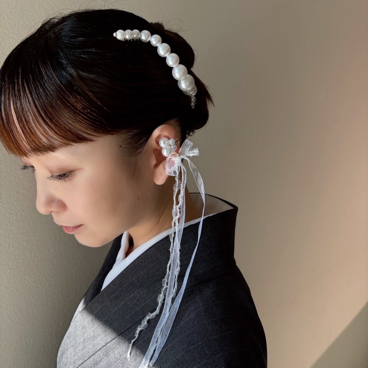 ohariko 【イヤーカフ】パール オーガンジーリボン レースメッシュリボン / EC_03_PR