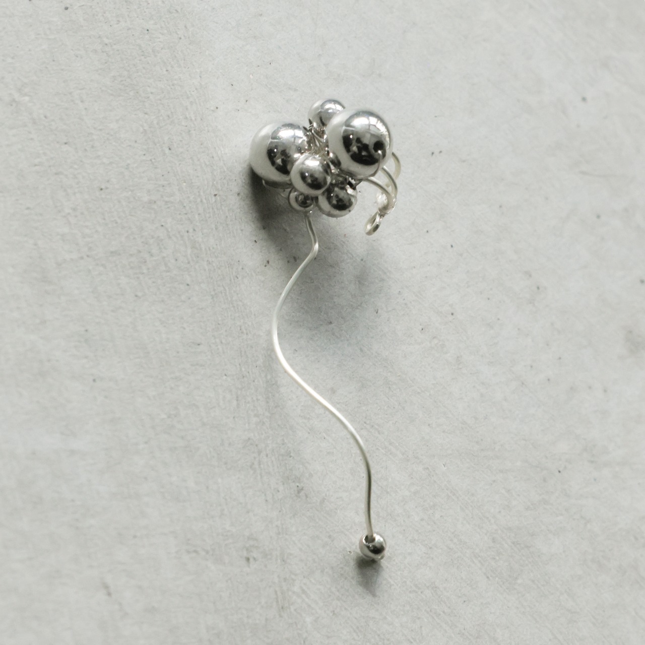 ランダムサイズのシルバーメタルボールが存在感抜群!リングタイプのイヤーカフです。