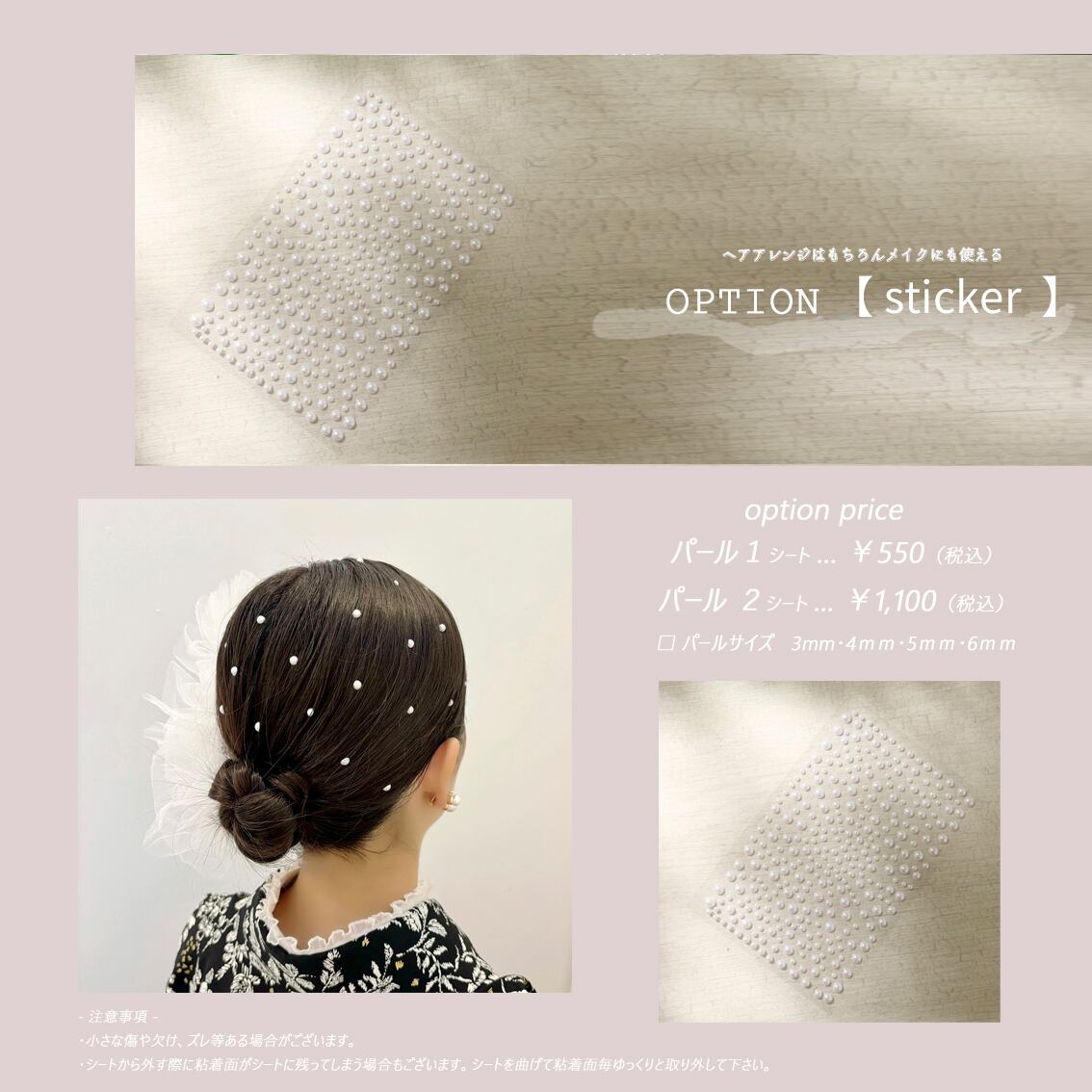 *ステンレス加工のアーティスティックワイヤーを使用しております。比較的アレルギーが起こりにくいとされていますが、お肌に異常が出た場合はご使用をおやめください。